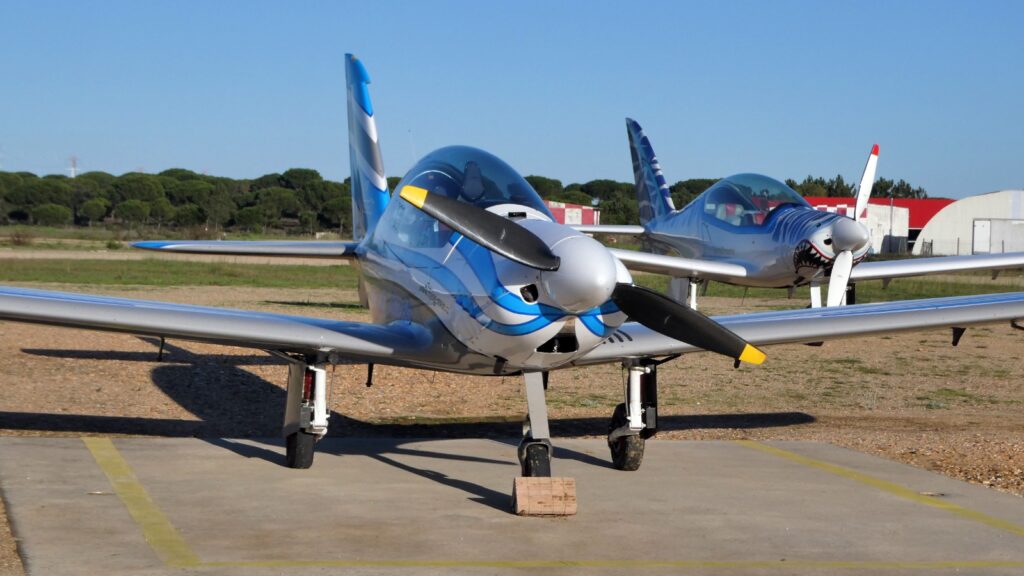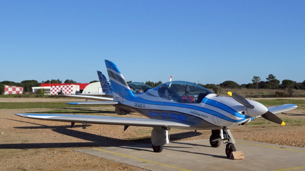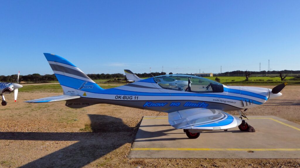 À chegada a Portugal, no Campo de Voo de Benavente, tive a agradável surpresa de ser perseguido, num “dog fight“, por outro Shark (tubarão) que tem o número de produção 001, tendo sido assim o primeiro “tubarão” a ser produzido comercialmente. Foi um dos dois “tubarões” portugueses, que me esperavam no ar, à chegada ao Campo de Voo de Benavente, quinta-feira passada.