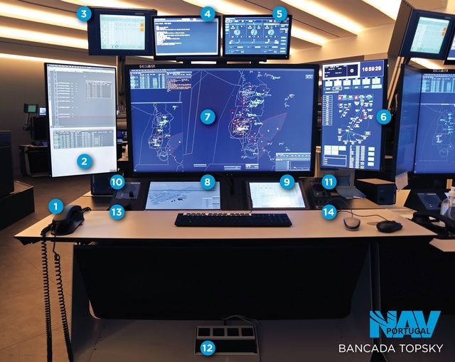 As bancadas ao dispor dos operacionais Controladores de Tráfego Aéreo da NAV Portugal, que integram o novo Sistema ATM e Comunicações, foram construídas em cumprimento com todos os requisitos técnicos e ergonómicos, equipadas com hardware do sistema de ATM e de Comunicações, Graphical User Interface de visualização Radar do sistema TOPSKY-ATC e infraestrutura de dados e de energia final.