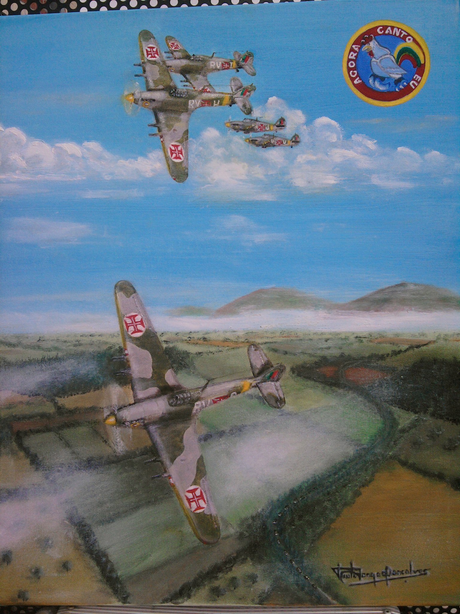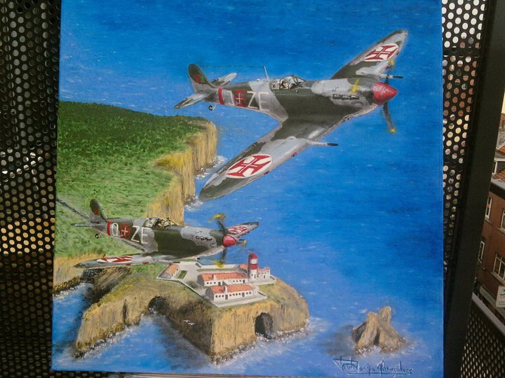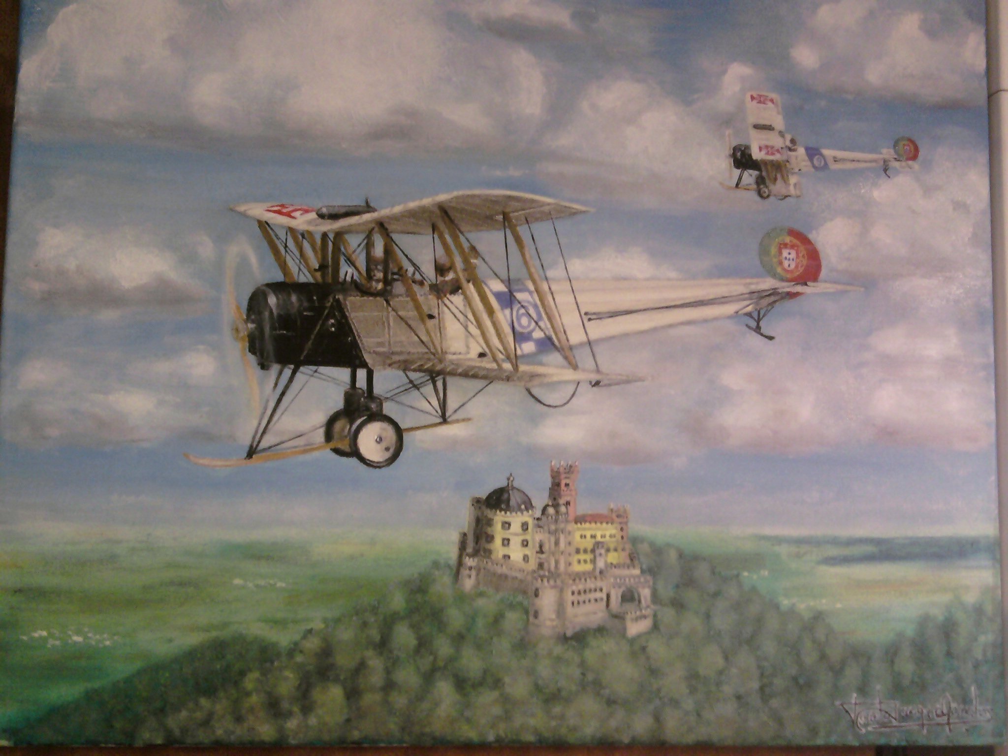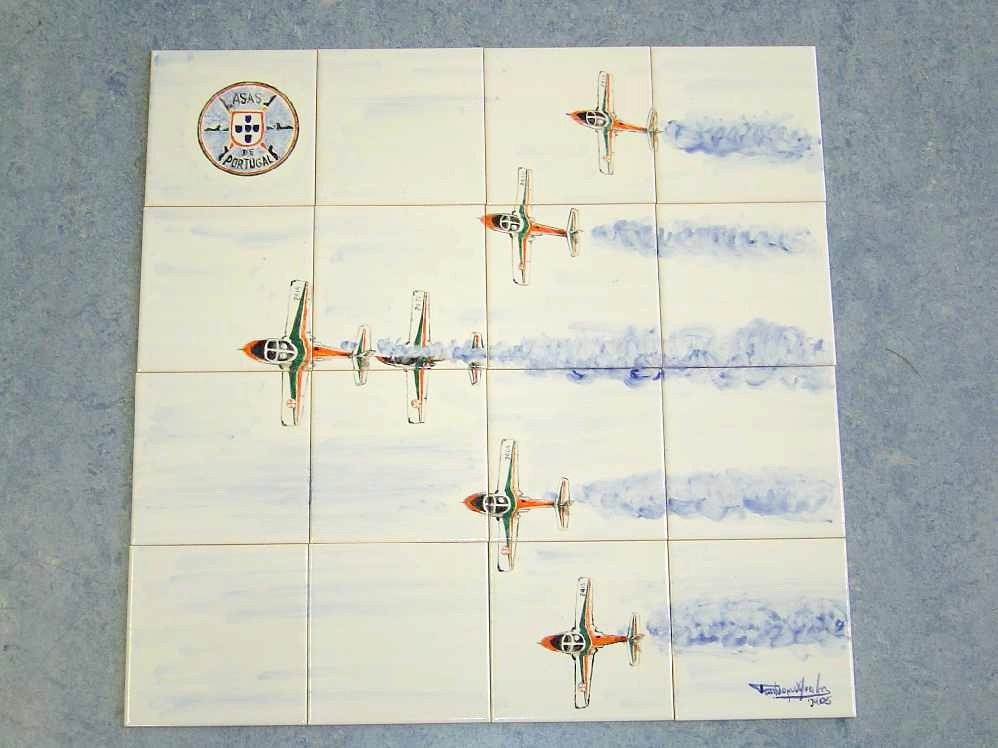 Embora nunca tenha tido qualquer formação sobre técnicas ou metodologias, o gosto de pintar cresceu e, em paralelo com os cartoons de missão, comecei a pintar temas aeronáuticos a óleo sobre tela ou em azulejo.