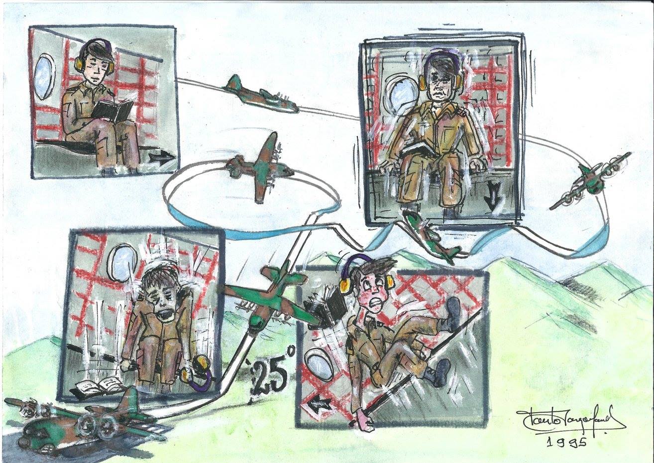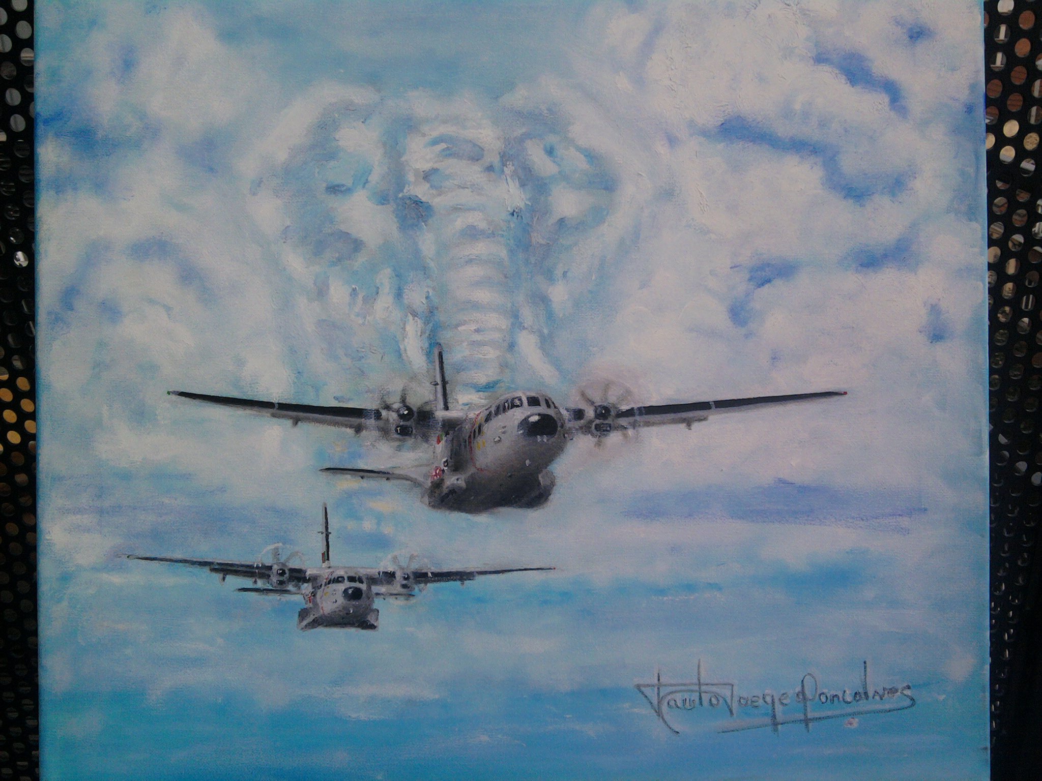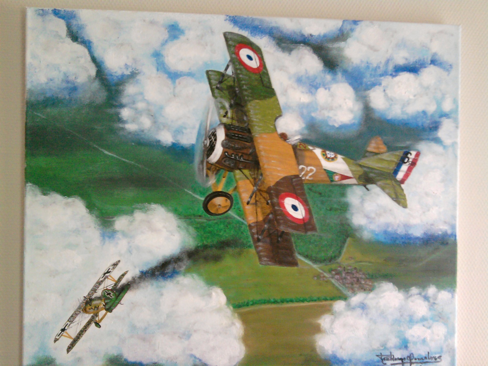 Embora nunca tenha tido qualquer formação sobre técnicas ou metodologias, o gosto de pintar cresceu e, em paralelo com os cartoons de missão, comecei a pintar temas aeronáuticos a óleo sobre tela ou em azulejo.